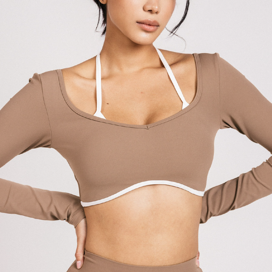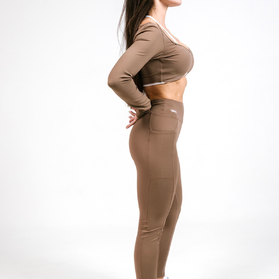 Conjunto de dos piezas con pretina media con recogido en la parte trasera que ayuda a estilizar la figura , tela elástica que se adapta muy bien al cuerpo. Top manga larga doble para mayor soporte.