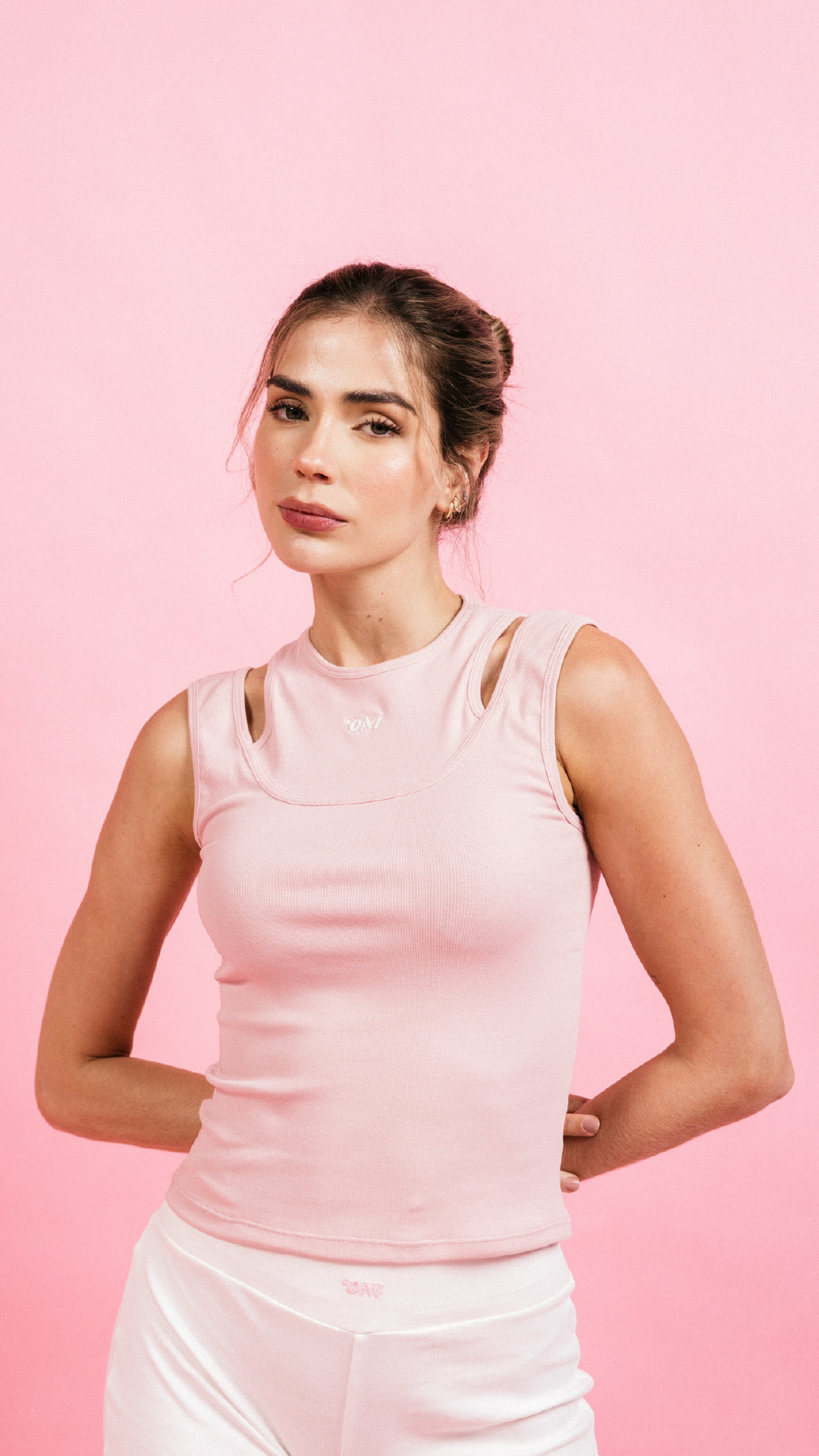 Tank top rosada , con corte y diseño exclusivo. Tela suave en algodón .